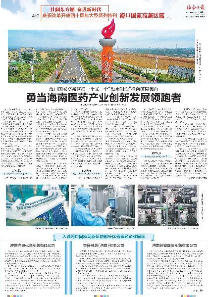 公司榮登《海南日報(bào)》慶祝改革開放四十周年大型系列特刊??趪腋咝聟^(qū)篇