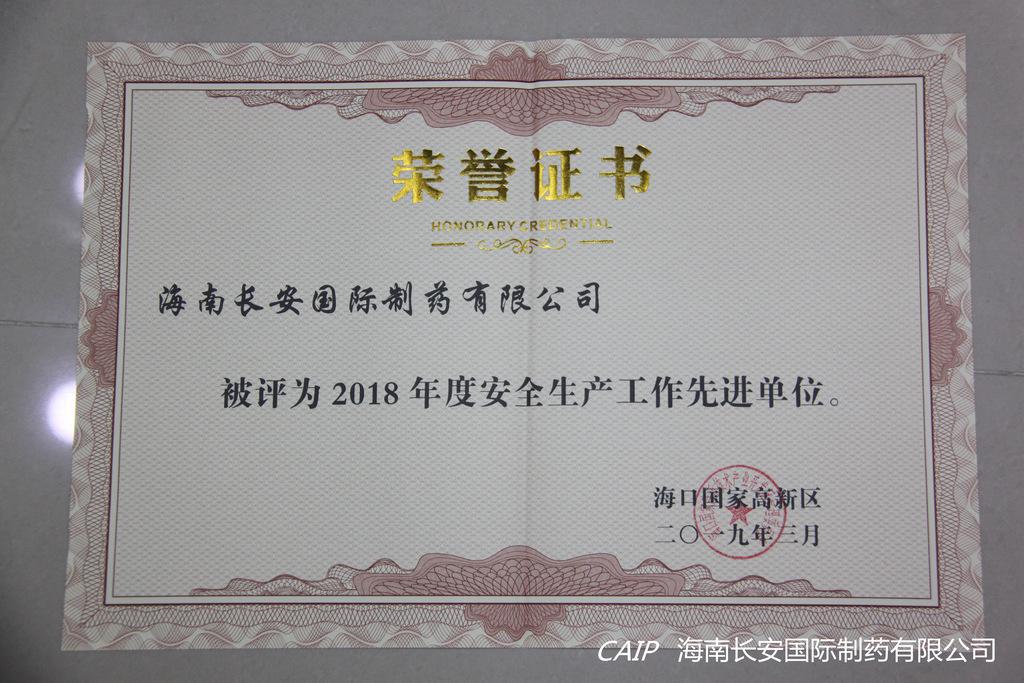3月21日上午,在??趪腋咝聟^(qū)2019年第一次安全生產(chǎn)工作會議暨2018年度安全生產(chǎn)工作表彰大會上,海南長安國際制藥有限公司榮獲“2018年度安全生產(chǎn)工作先進(jìn)單位”的表彰。