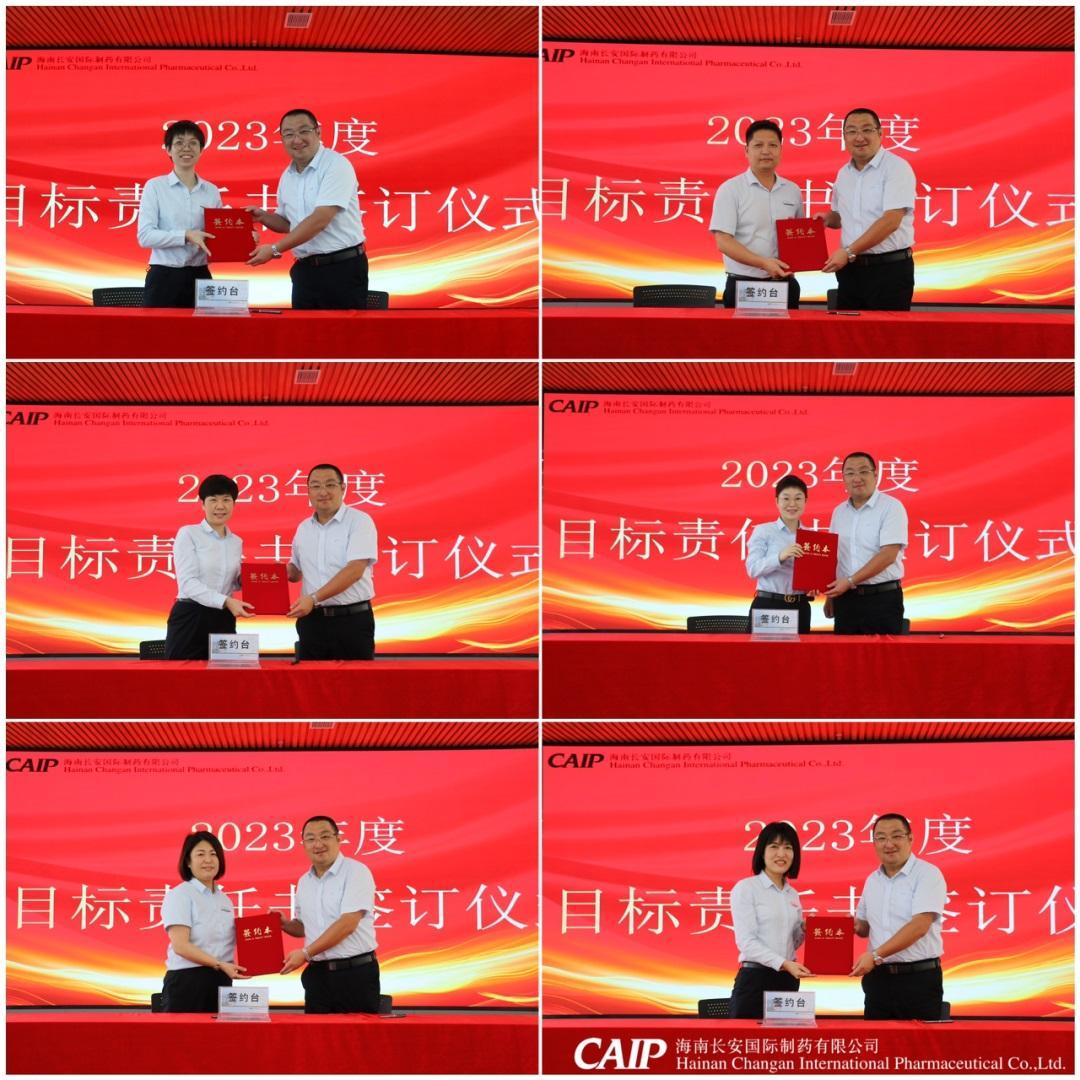 會議伊始,長安制藥汪立冬總經(jīng)理與各版塊負(fù)責(zé)人簽訂了2023年度目標(biāo)任務(wù)書。一份份效益當(dāng)先、結(jié)果為上的目標(biāo)責(zé)任書,宣示著長安制藥新的征程已全面啟航。目標(biāo)責(zé)任書的簽訂,不僅是一種儀式,更是一種鼓舞,激勵著每個部門、每個人全力以赴去達成目標(biāo)!